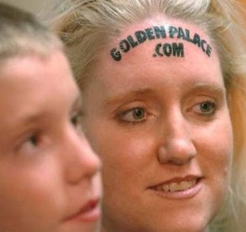 cedeu a testa para publicidade tatuada. Ela disse que precisava de dinheiro