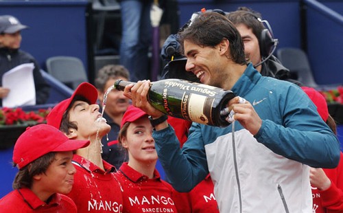 Barcelona, o espanhol Rafael Nadal derramou vinho espumante na boca de um dos