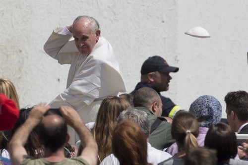 problema com o vento no Vaticano. Após a celebração de uma missa na Praça de